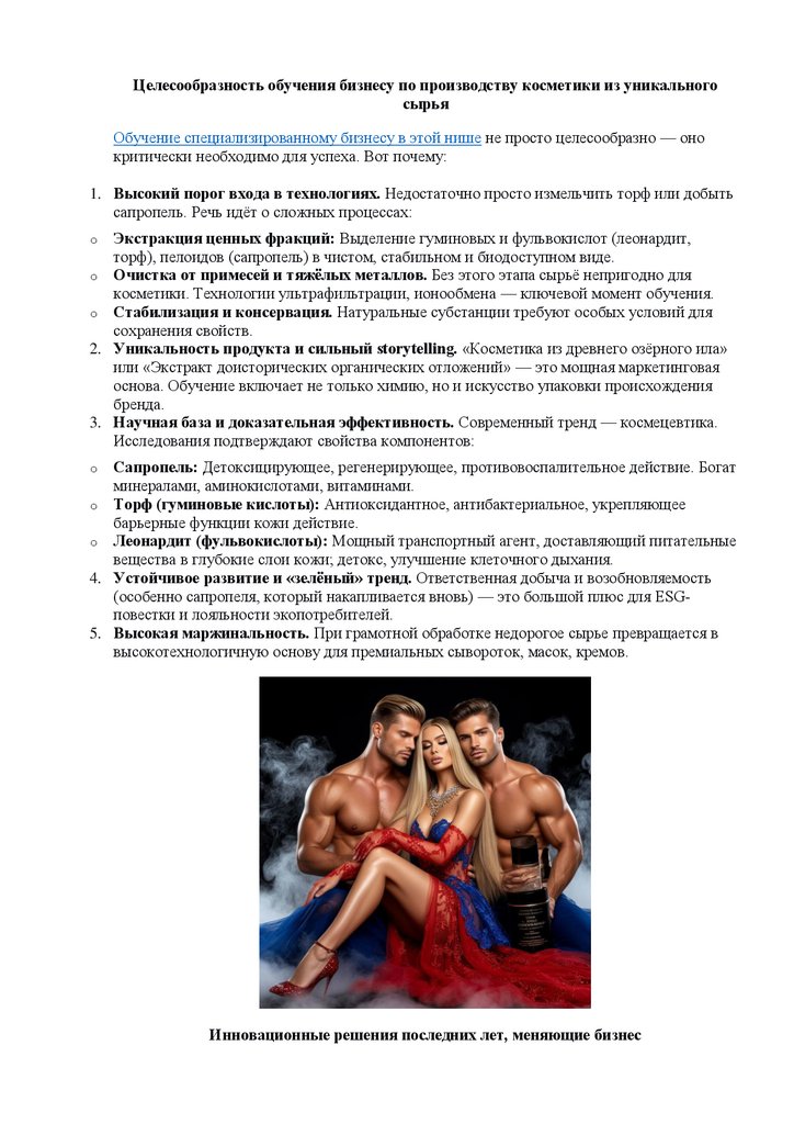 Целесообразность обучения бизнесу по производству косметики из уникальногосырья