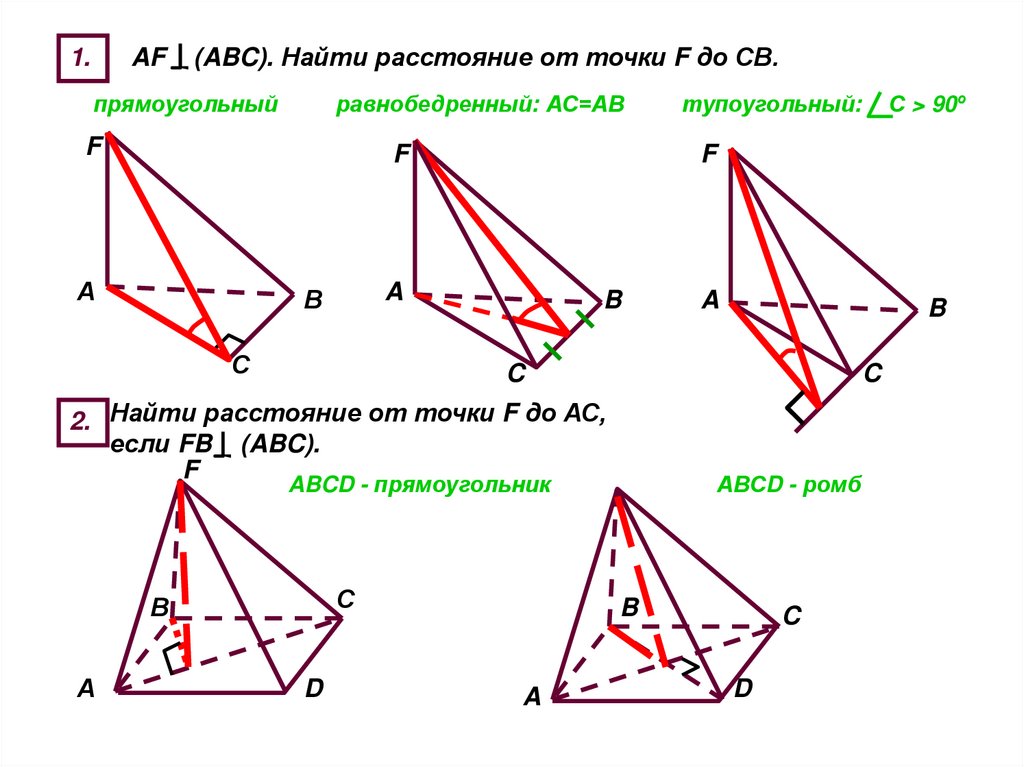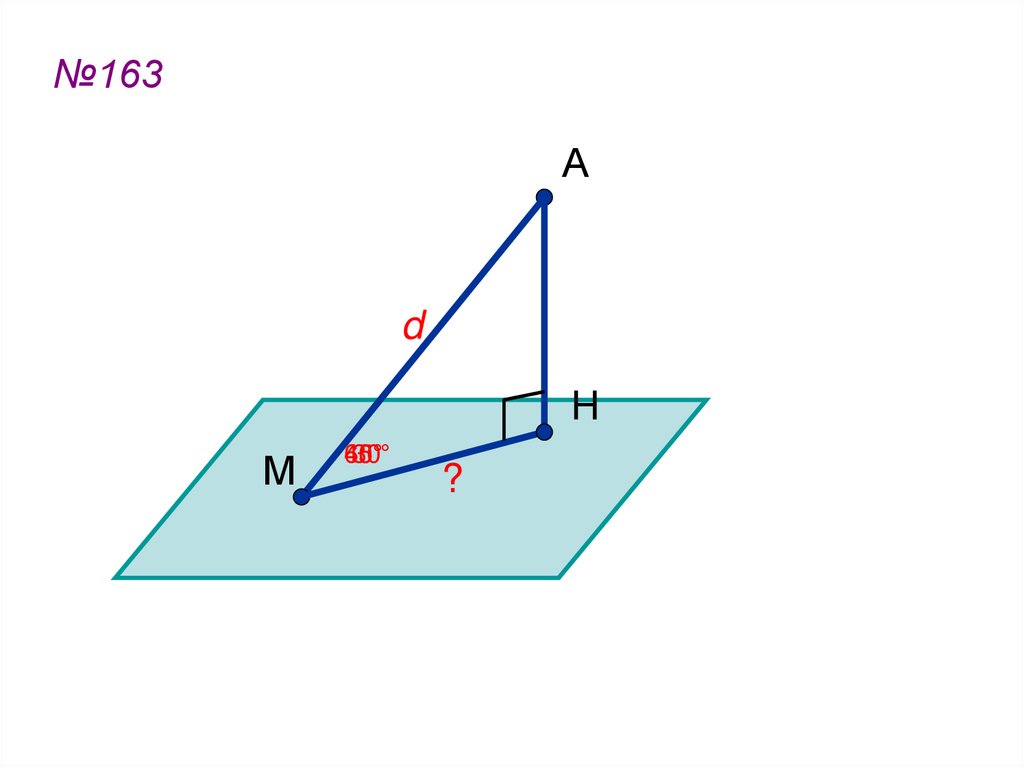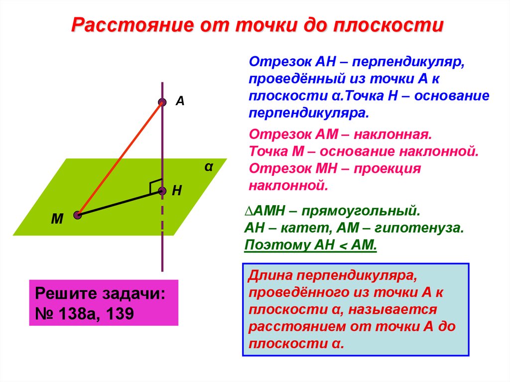 Расстояние от точки до плоскостиОтрезок АН – перпендикуляр,