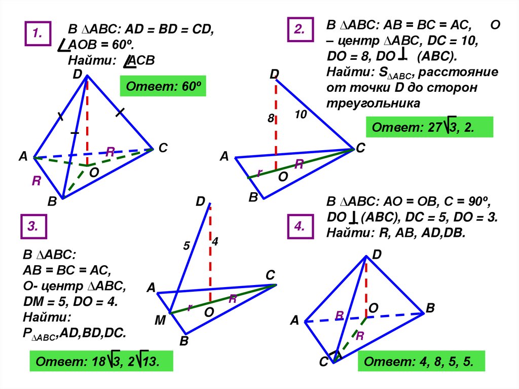 В ∆АВС: AD = BD = CD,AOB = 60º.