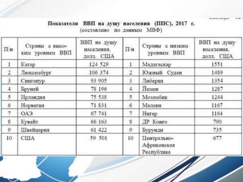 Показатели экономического развития стран мира 1