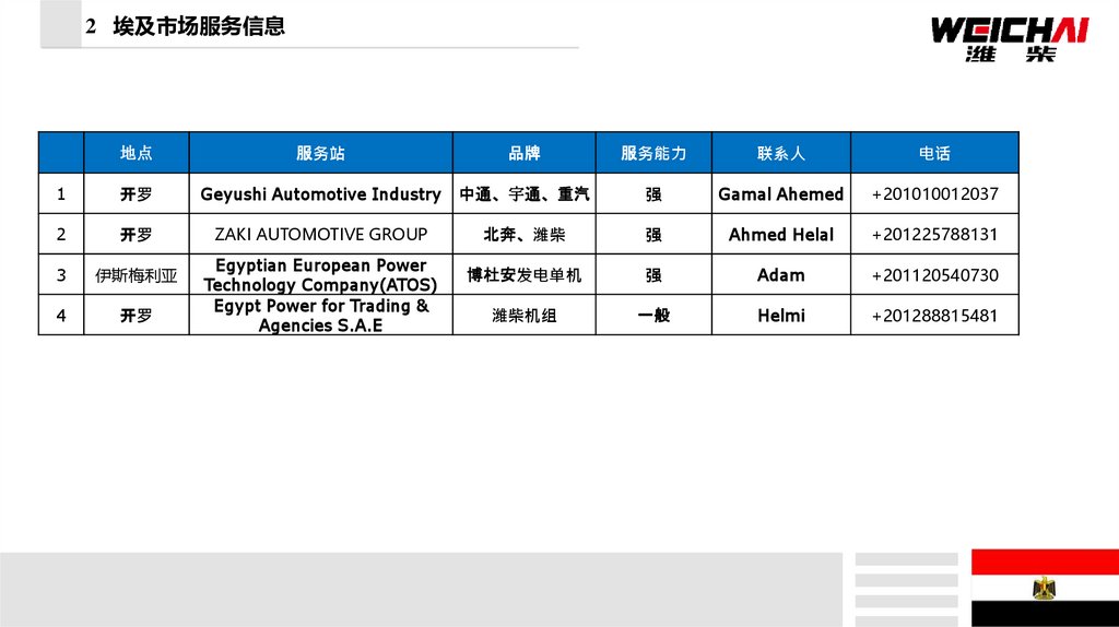 主要服务渠道渠道名称 Egyptian European Power Technology Company(ATOS)