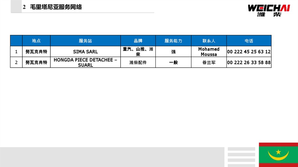 2 毛里塔尼亚服务网络地点