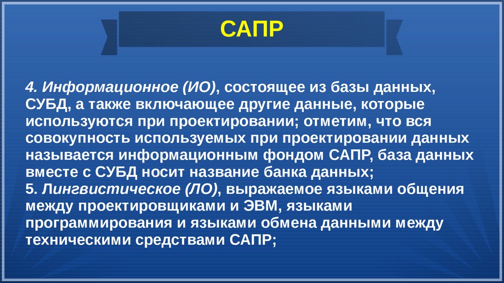 САПР4. Информационное (ИО), состоящее из базы данных,