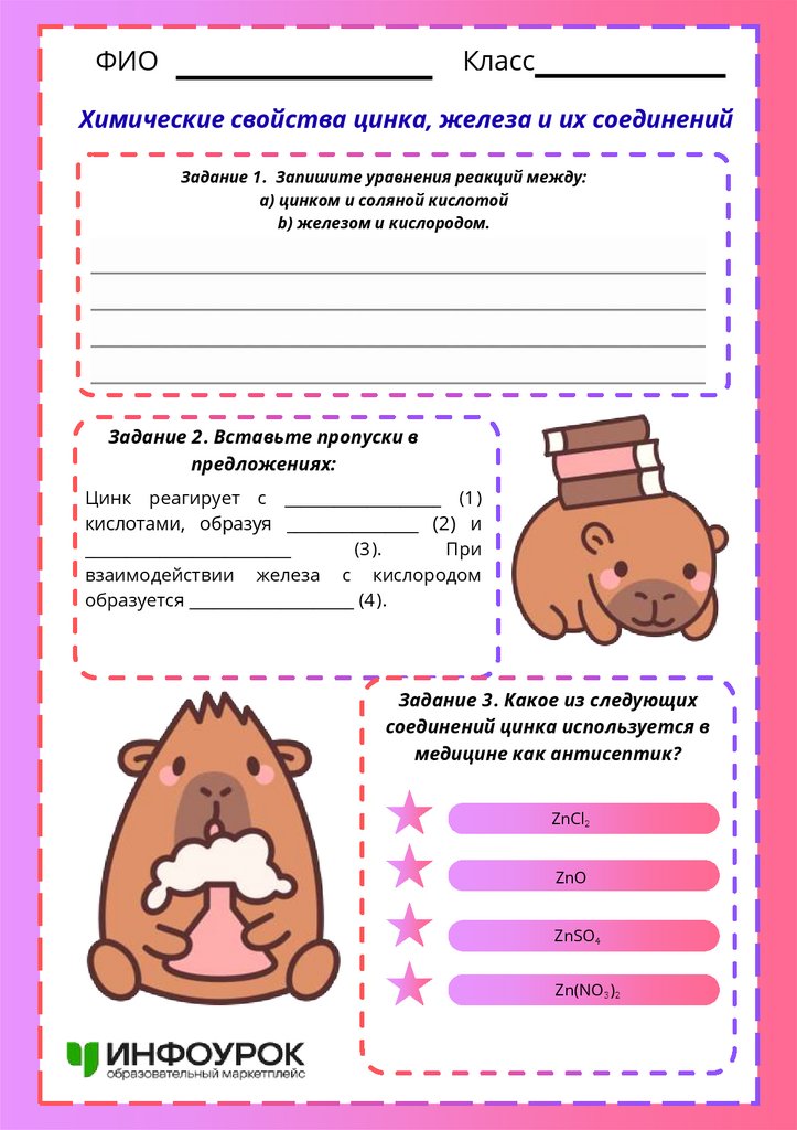 Химические свойства цинка, железа и их соединений