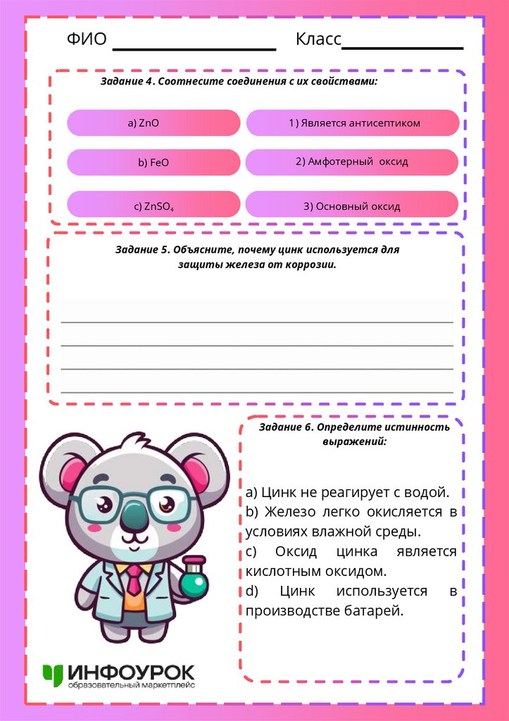 Задание 5 . Объясните, почему цинк используется для