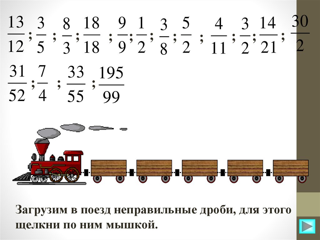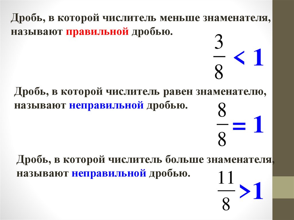 2) Если числитель меньше знаменателя, то дробьа) правильная; б) неправильная; в) обыкновенная.