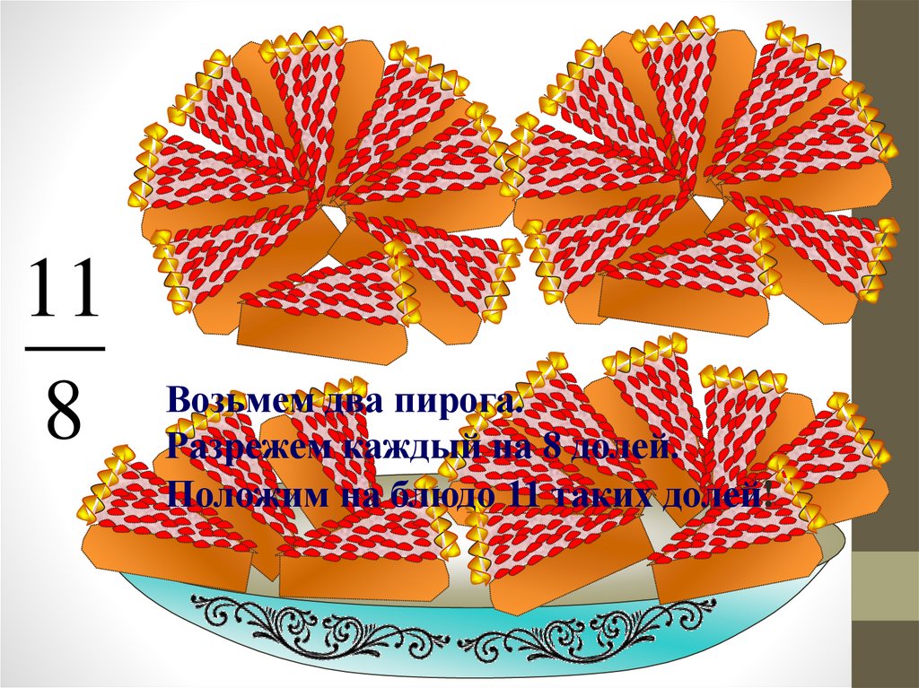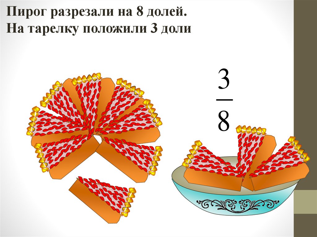 Пирог разрезали на 8 долей.На тарелку положили 3 доли