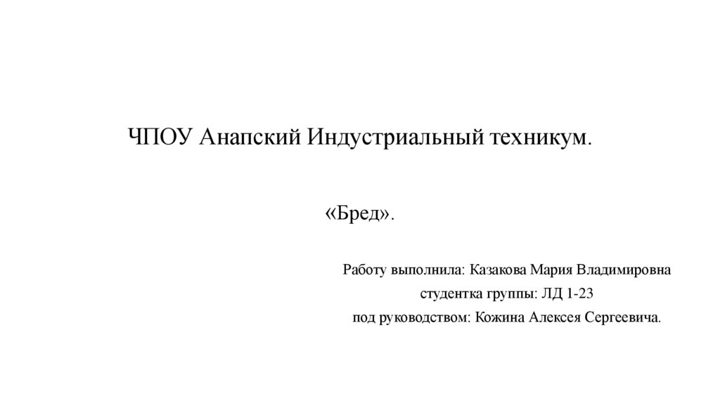 ЧПОУ Анапский Индустриальный техникум.«Бред».