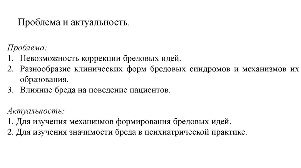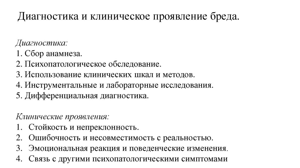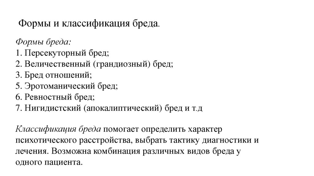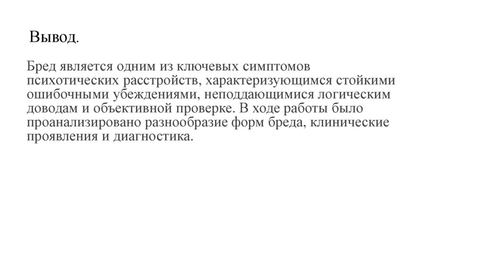 Заключение.Понимание механизмов возникновения и проявления бреда играет