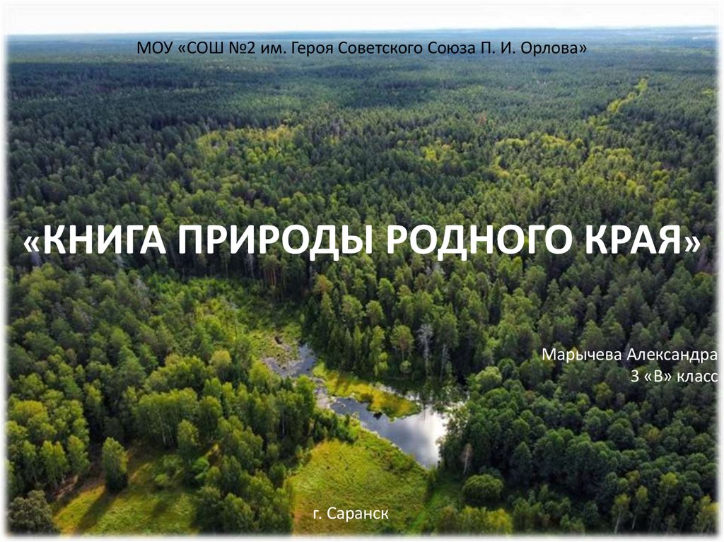 МОУ «СОШ №2 им. Героя Советского Союза П. И. Орлова»«КНИГА ПРИРОДЫ РОДНОГО КРАЯ»