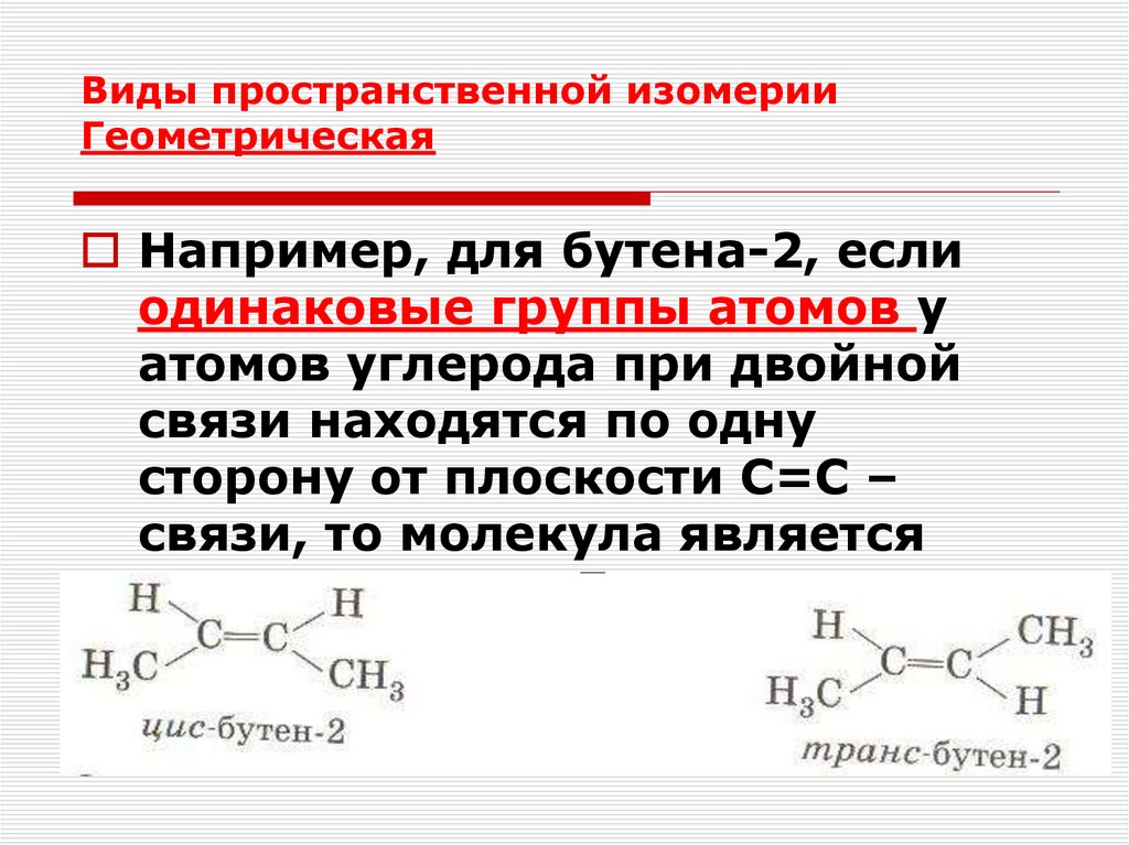 Виды пространственной изомерииГеометрическая