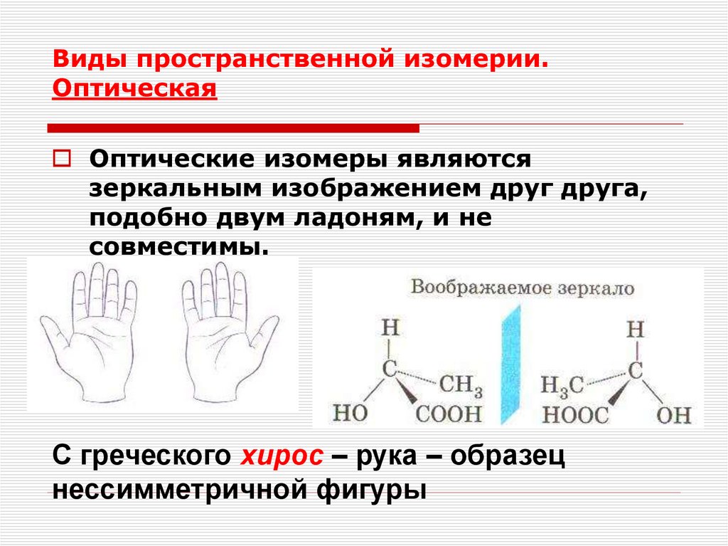 Виды пространственной изомерии.Оптическая