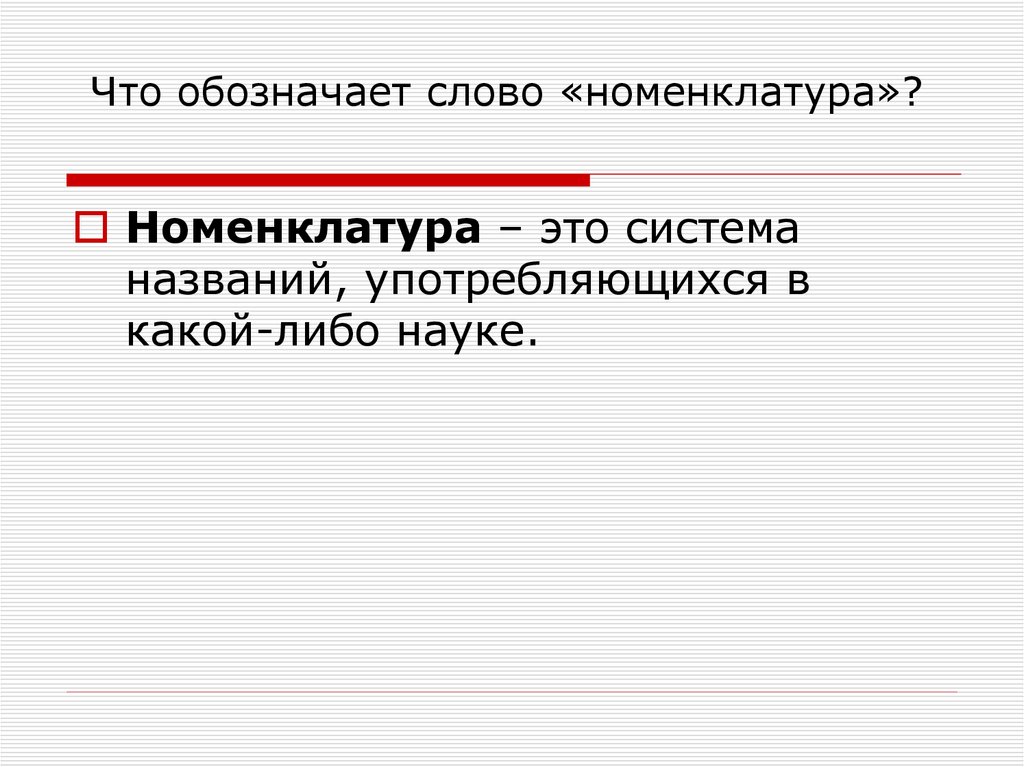 Что обозначает слово «номенклатура»?Номенклатура – это система