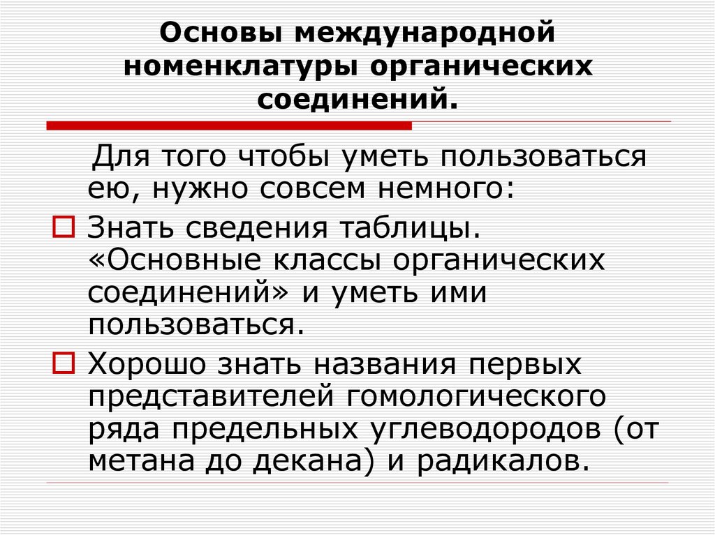 Основы международнойноменклатуры органических