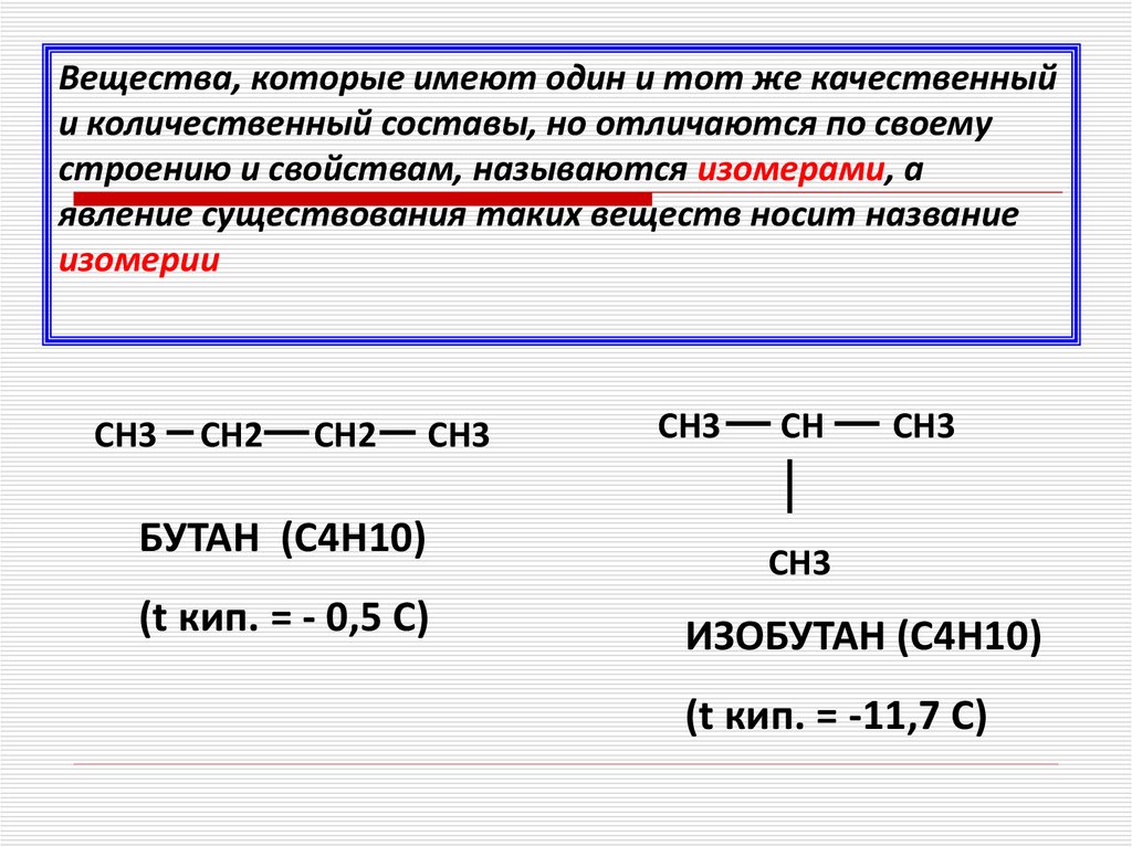 Вещества, которые имеют один и тот же качественныйи количественный составы, но отличаются по своему