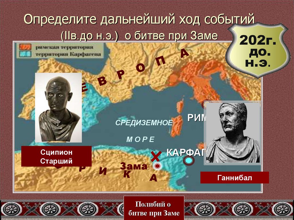 Определите дальнейший ход событий(IIв.до н.э.) о битве при Заме