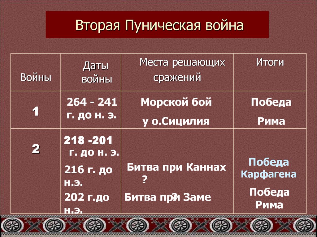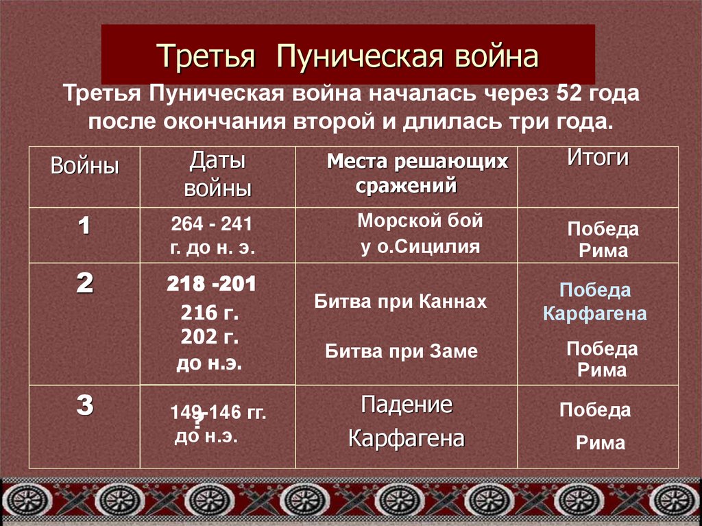 8. Хронологическая таблица Пунические войны