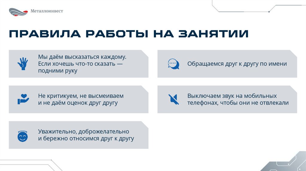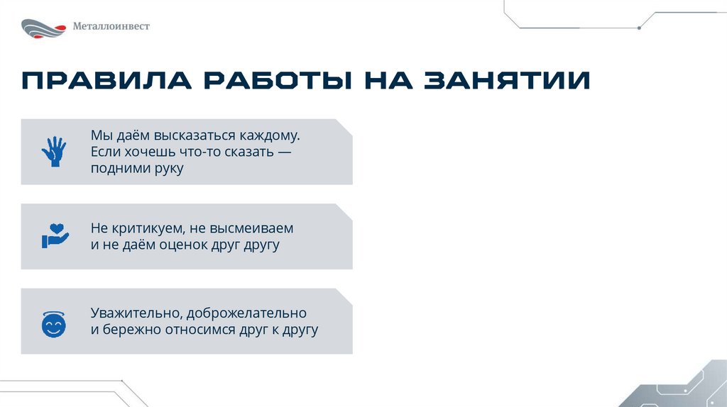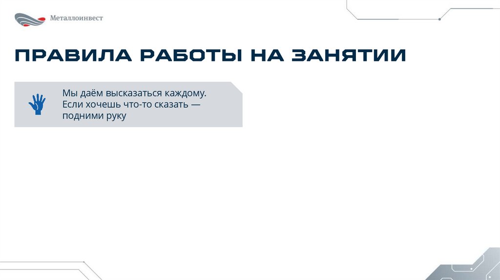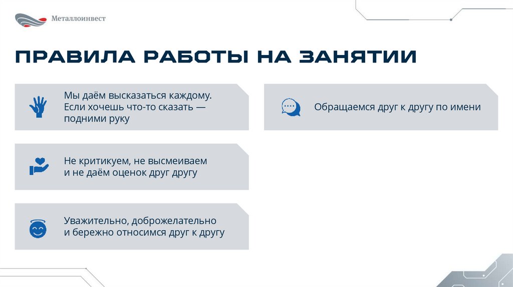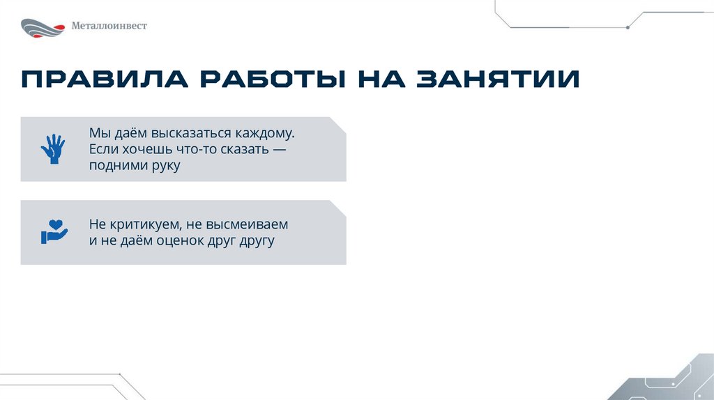 ПРАВИЛА РАБОТЫ НА ЗАНЯТИИМы даём высказаться каждому.