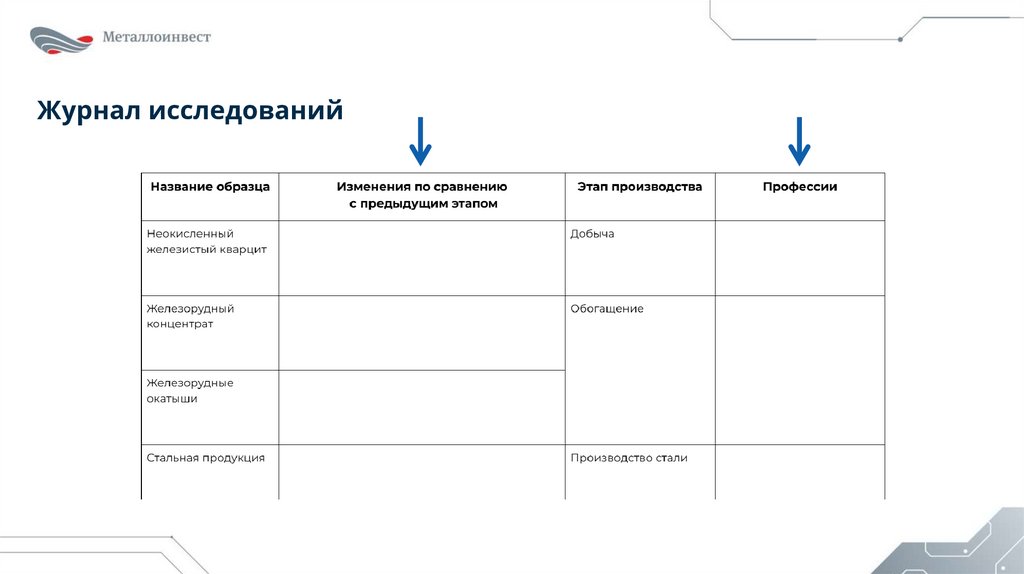 Запишите в журнал исследований: