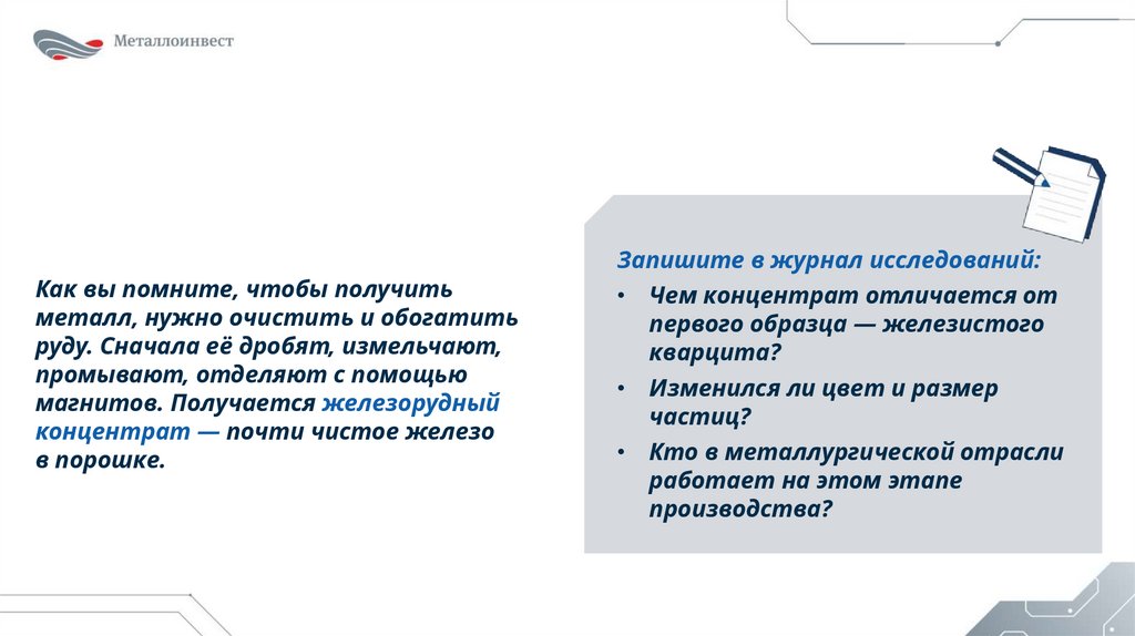 Как вы помните, чтобы получитьметалл, нужно очистить и обогатить