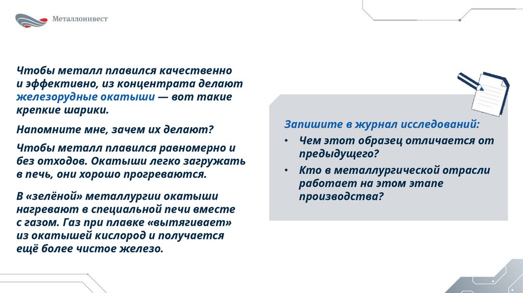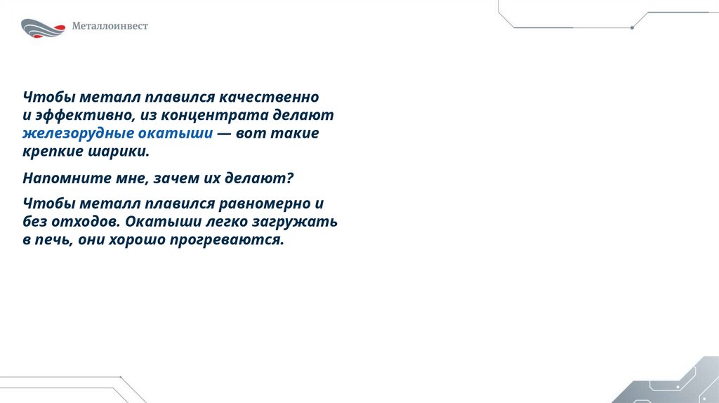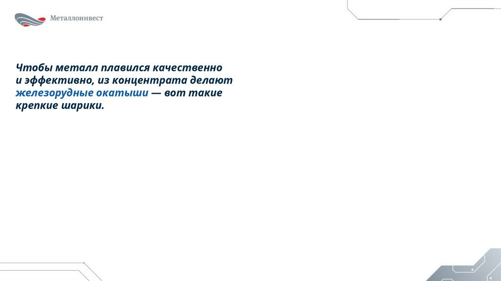 без отходов. Окатыши легко загружать