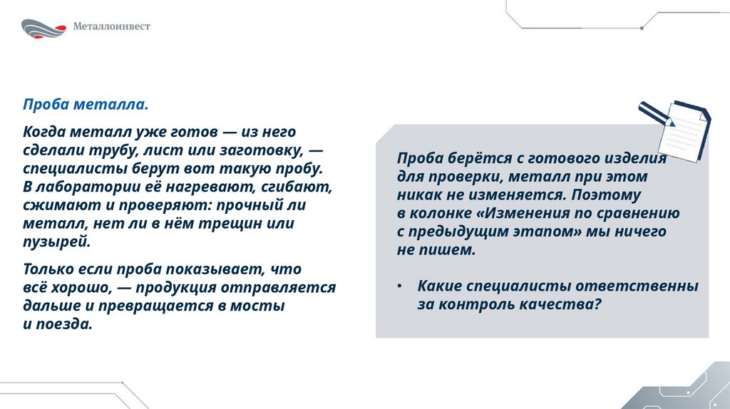 Проба металла.Когда металл уже готов — из него