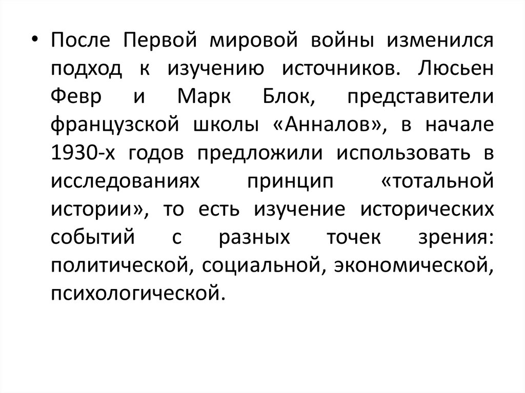 • После Первой мировой войны изменилсяподход к изучению источников. Люсьен