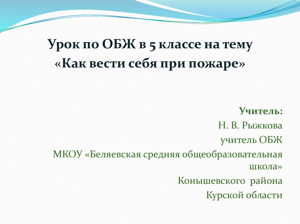 Урок по ОБЖ в 5 классе на тему«Как вести себя при пожаре»