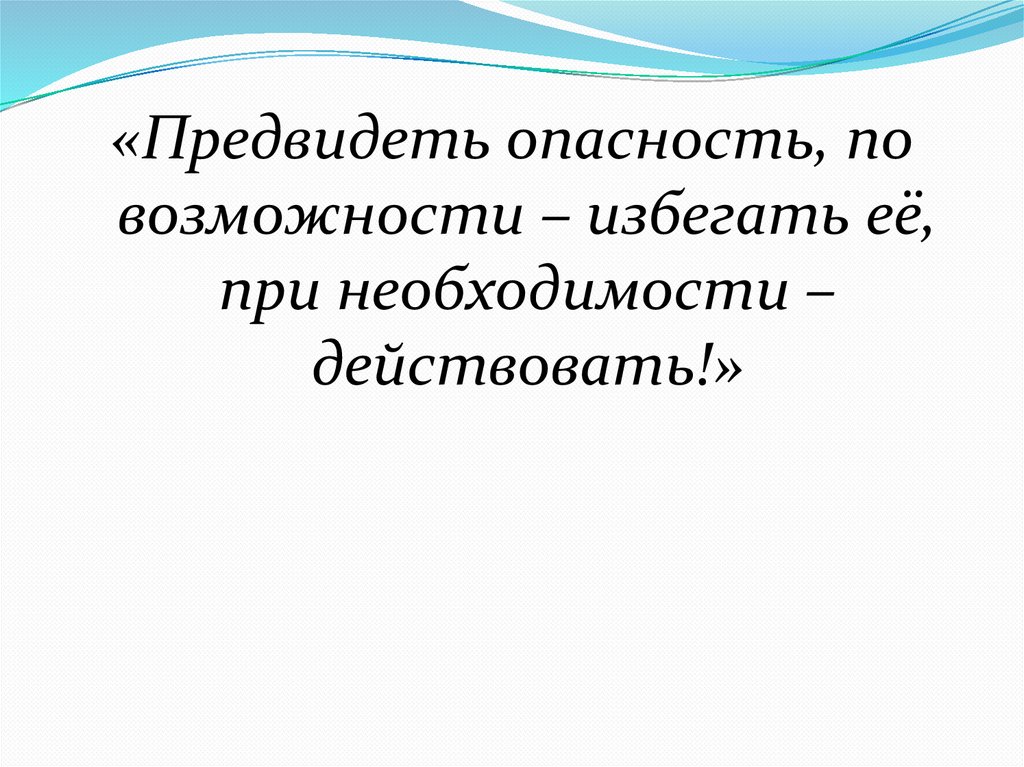 «Предвидеть опасность, повозможности – избегать её,