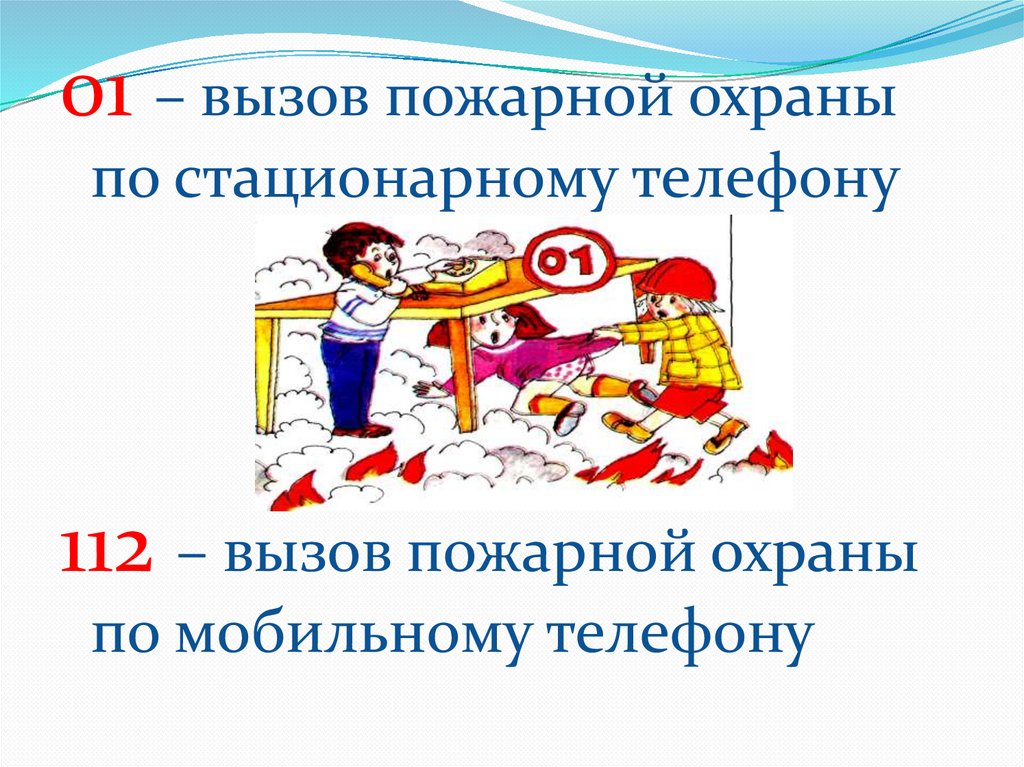 01 – вызов пожарной охраныпо стационарному телефону