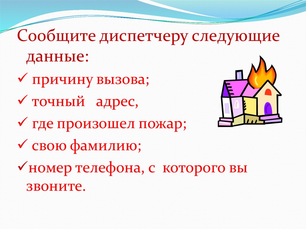 Сообщите диспетчеру следующиеданные:
