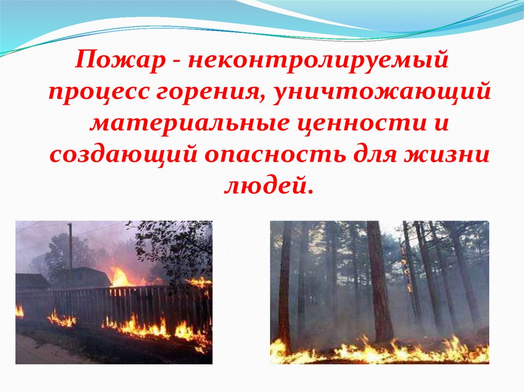 Пожар - неконтролируемыйпроцесс горения, уничтожающий