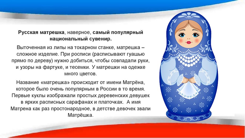 Русская матрешка, наверное, самый популярныйнациональный сувенир.