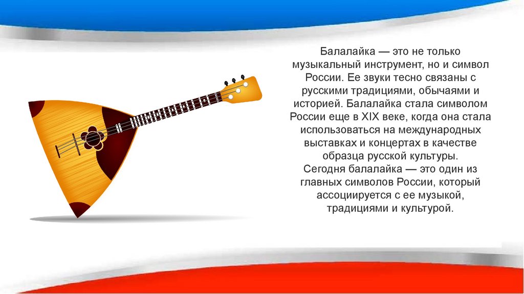 Балалайка — это не толькомузыкальный инструмент, но и символ