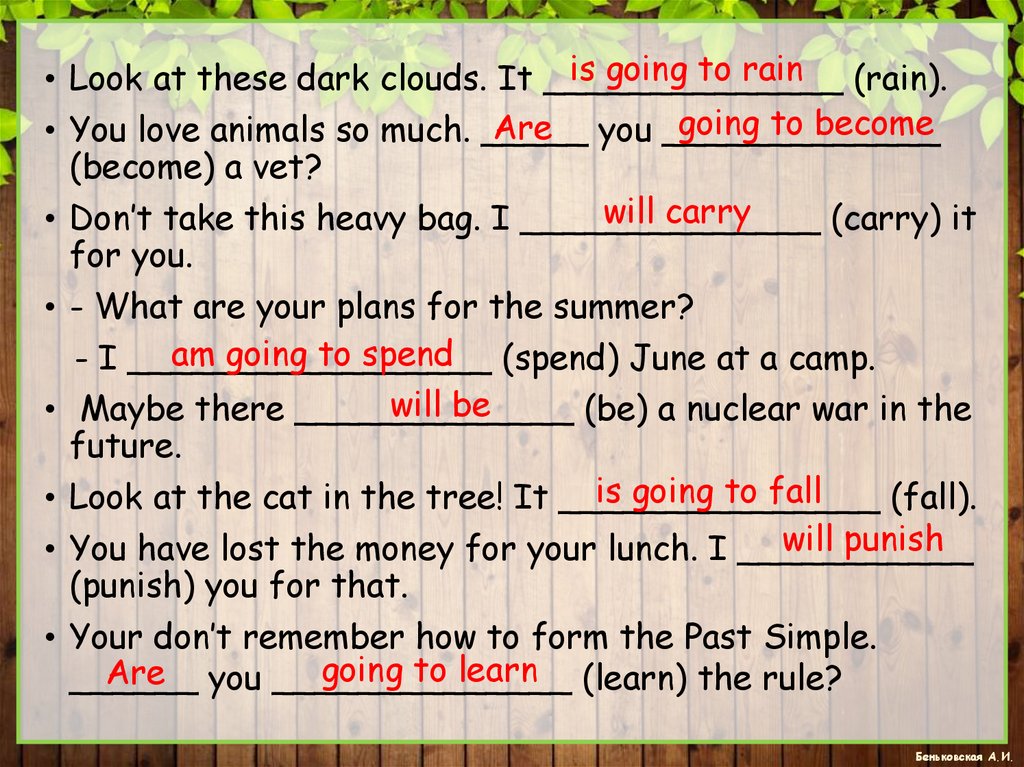 is going to rain (rain).• Look at these dark clouds. It ______________