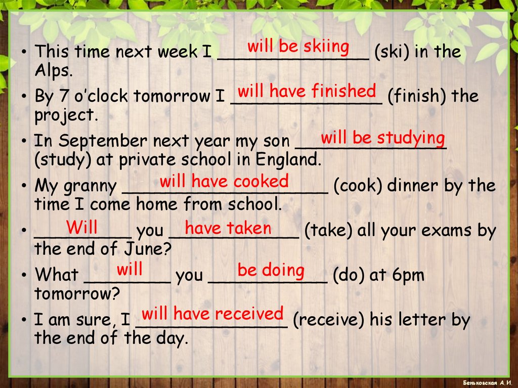 • By 7 o’clock tomorrow I ______________