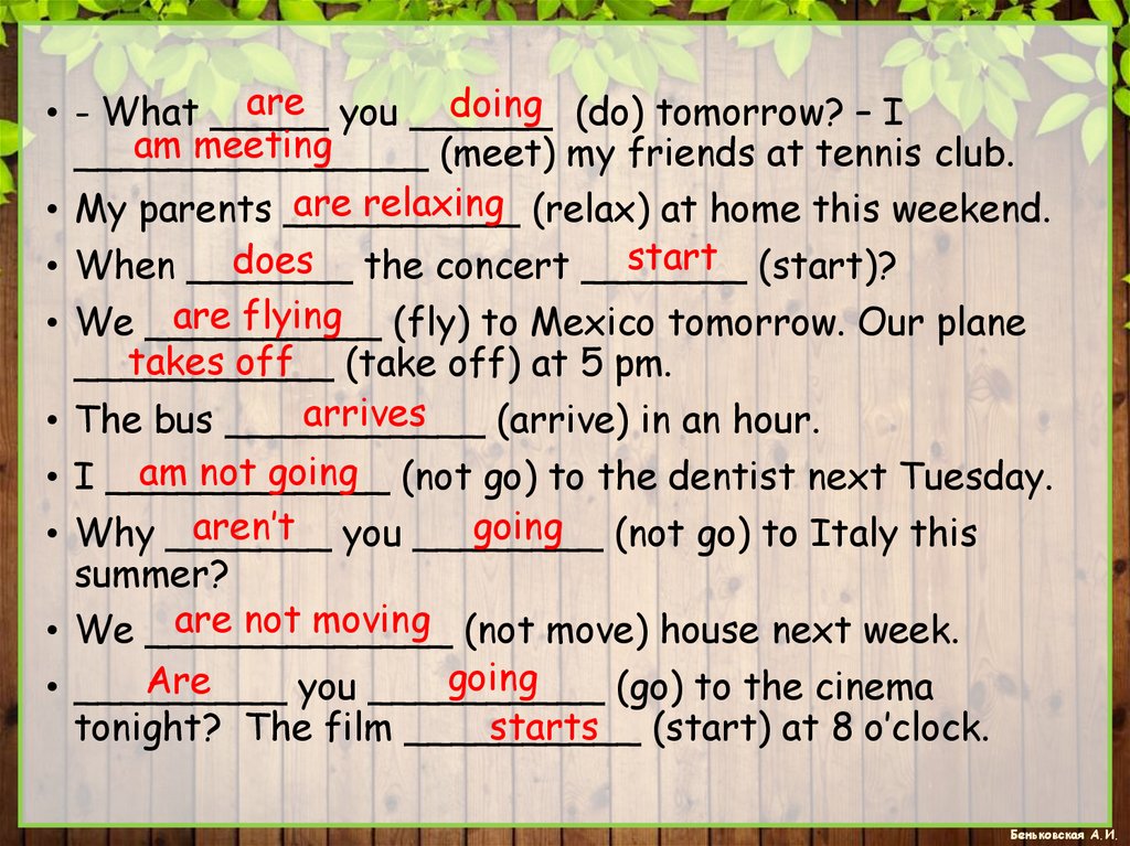 are you ______doing (do) tomorrow? – I
