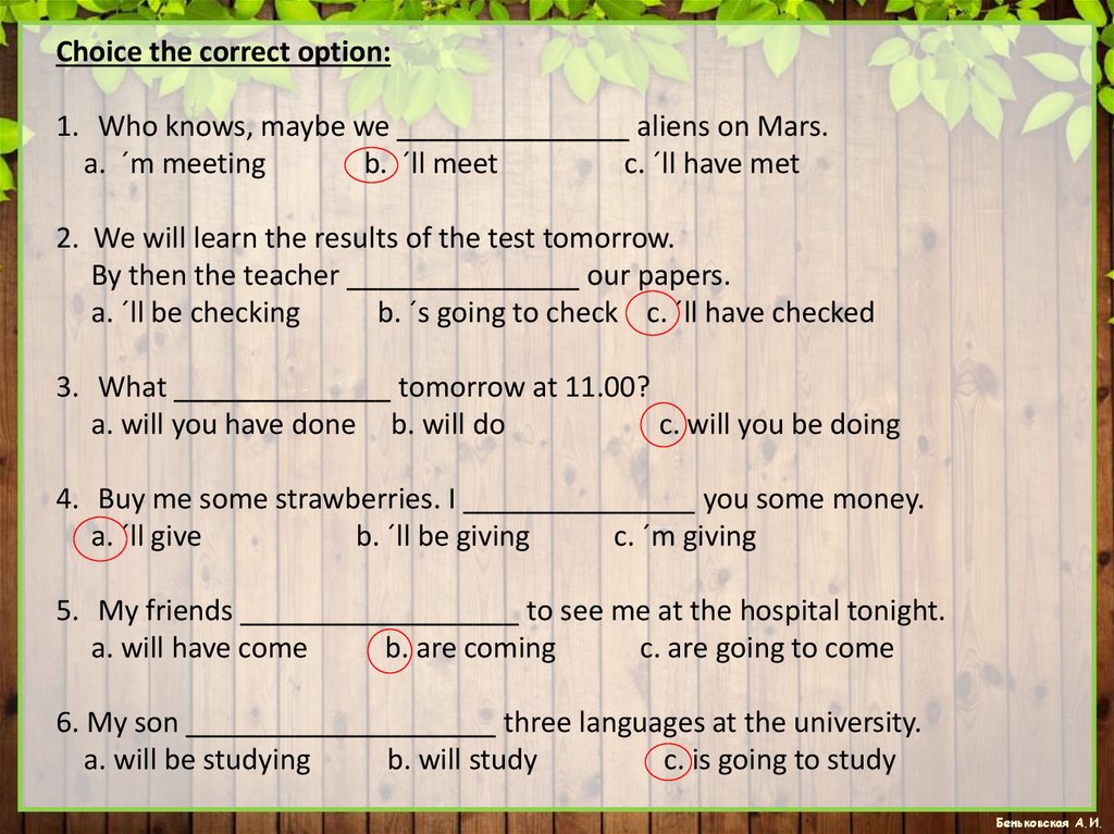 Choice the correct option:1. Who knows, maybe we _______________ aliens on Mars.