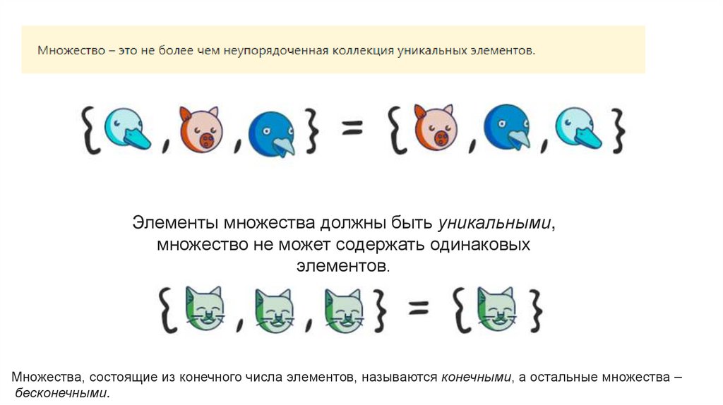 Элементы множества должны быть уникальными,множество не может содержать одинаковых