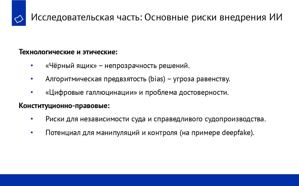 Исследовательская часть: Основные риски внедрения ИИТехнологические и этические: