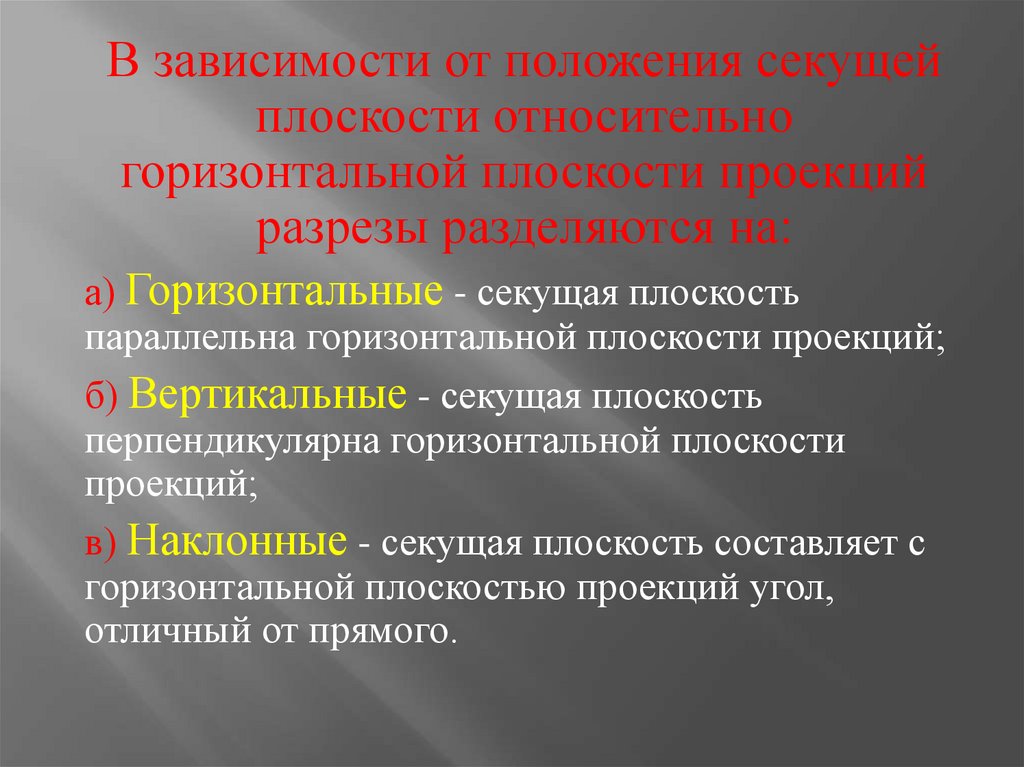 В зависимости от положения секущейплоскости относительно