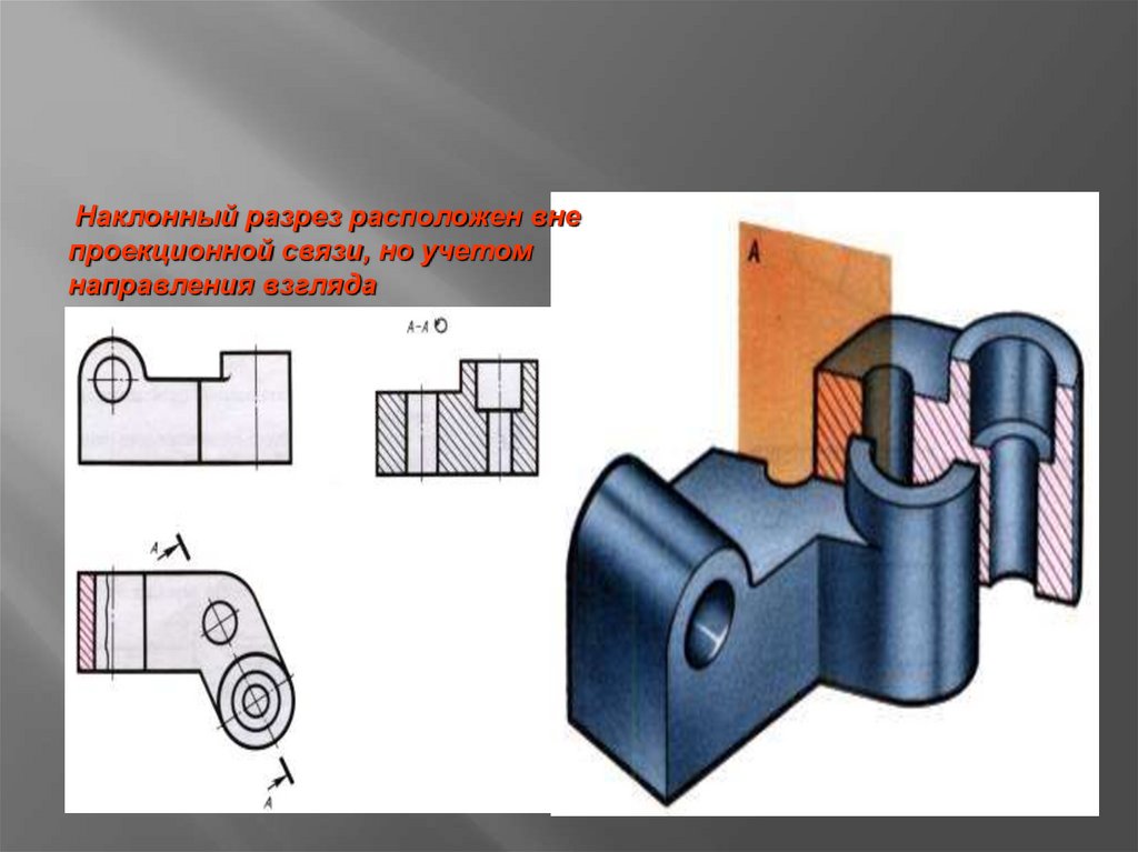 Наклонный разрез расположен внепроекционной связи, но учетом