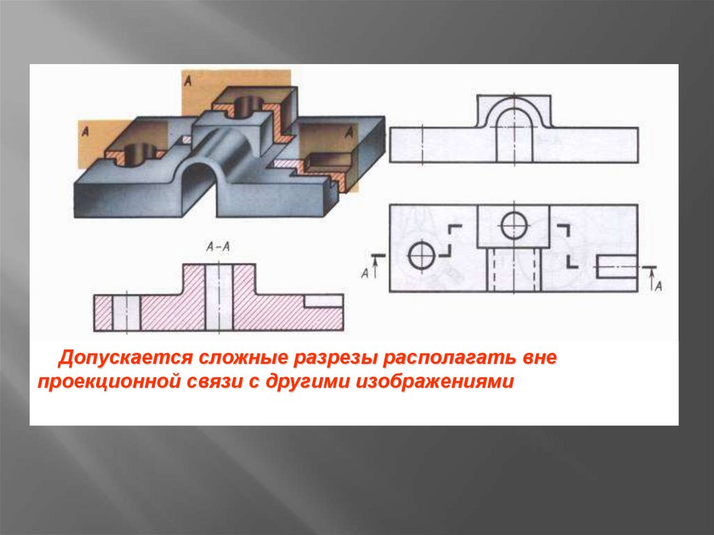 Допускается сложные разрезы располагать внепроекционной связи с другими изображениями