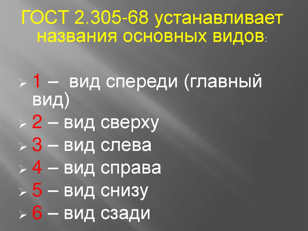 ГОСТ 2.305-68 устанавливаетназвания основных видов: