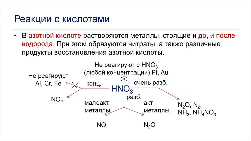 водорода. При этом образуются нитраты, а также различные