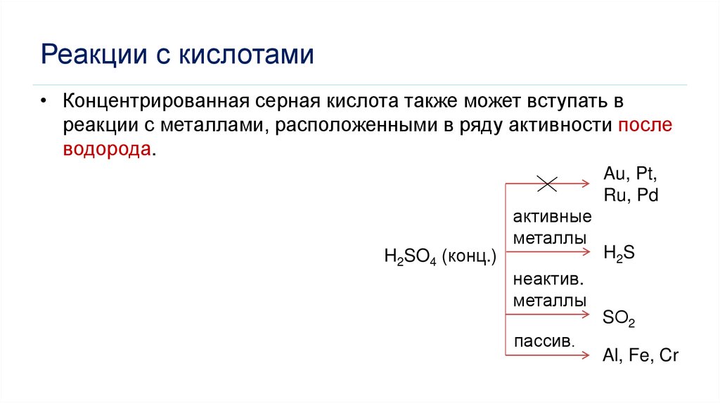 Реакции с кислотами• Концентрированная серная кислота также может вступать в