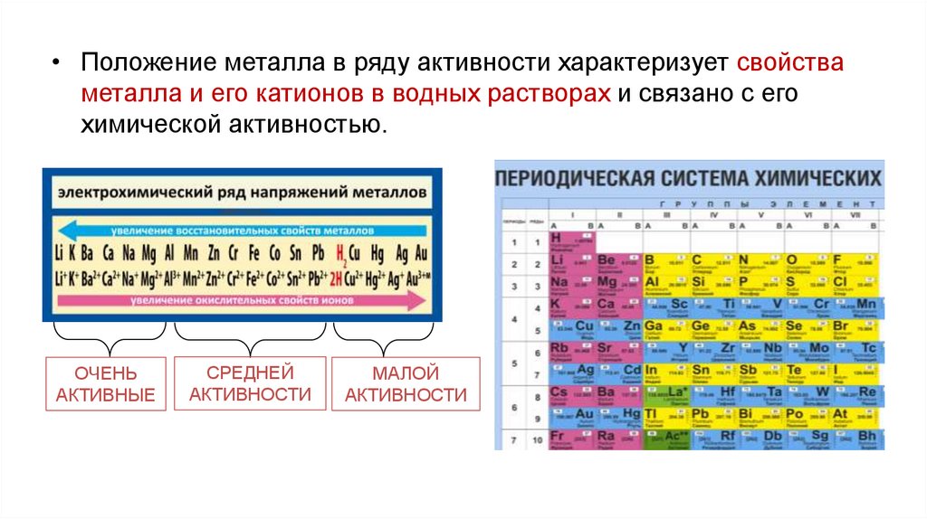 • Положение металла в ряду активности характеризует свойстваметалла и его катионов в водных растворах и связано с его