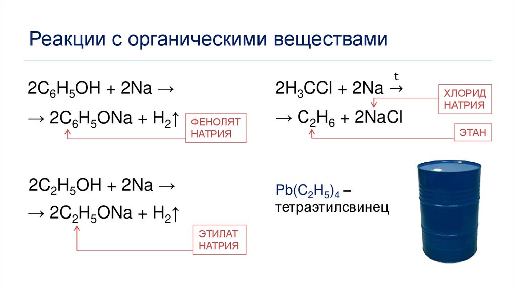 Реакции с органическими веществамиt
