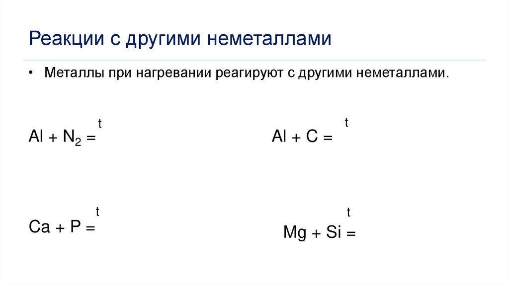 Реакции с другими неметаллами• Металлы при нагревании реагируют с другими неметаллами.