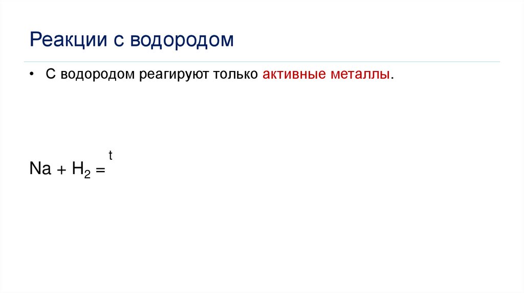 Реакции с водородом• С водородом реагируют только активные металлы.